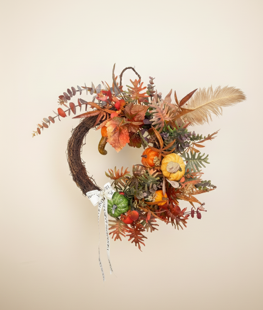 STUNNING HANDCRAFTED AUTUMN WREATH FILLED WITH THE SEASONS FINEST ARTIFICIAL LEAVES AND BERRIES. PERFECT FOR LONG LASTING HOME DECOR THAT...