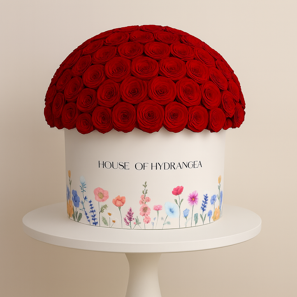 A magnificent box of vibrant red roses, carefully arranged to create a striking display of elegance and passion. They create a lush, breathtaking arrangement that is both grand and romantic. This arrangement is an ideal choice for expressing deep emotions. With reliable delivery flowers in Dubai service, it ensures freshness and elegance.